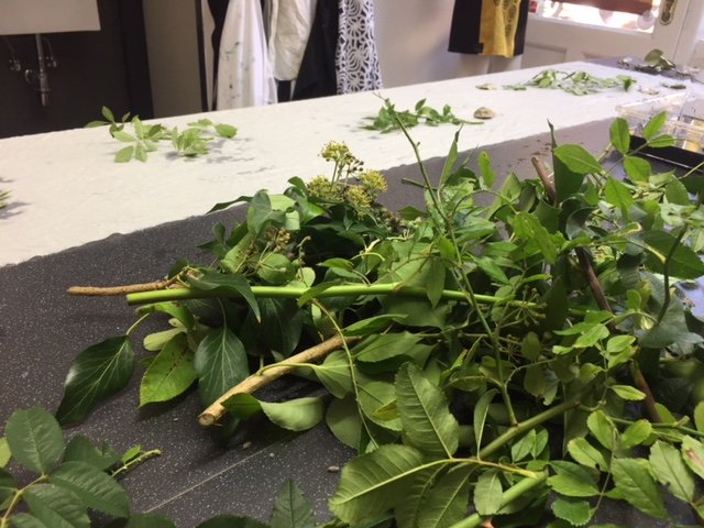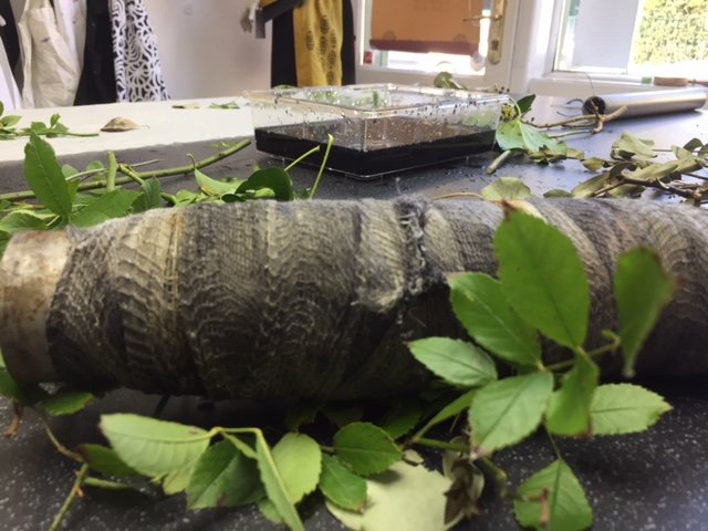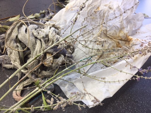 Dazu wird zuerst der Wollstoff vorgebeizt, dann die Blätter aufgelegt und anschließend fest eingerollt. Schlussendlich wird das Päckchen gedämpft und ein paar Stunden später haben wir das wundervolle Ergebnis in der Hand - aber das dauert noch ein bisschen!